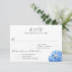 Svarskort på menyn Seaside Garden i vitt med svart text och ett blått hydrangea med stjärnfiskdesign. Exempeltexten frågar gästerna om exakt antal om de är närvarande. De måste också ange antalet ställe vid varje angiven entré. Detta hjälper de oväntade gästerna i behållan att närvara och ge att få en korrekt mängd måltider som behövs. Modern typsnitt i skript och tryckt form används och varje mall är lätt att anpassa. Reverse är lätt grått blue färg.