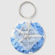Anpassa nyckelringar och ge som bröllopsförespråkare. Blå vattenblommor och vit stjärnfisk är anpassningsbarnas utformning med två ställen. Tack till gästerna i ett kort-meddelande och lägg till namn och bröllop datum. Bulkorderrabatter gäller. Matchar objekt i Seaside Garden Blue-designlinjen. Du kan ändra stil och form, men den runda är den billigaste.