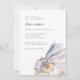 Kustduschinbjudan för barn i chicen innehåller en illustration av den rosan och elfenbenssäsongen, med uppgifter om babyduschen i klassiskt marint blått och mjukt grått. Perfekt för strand-, sommar- eller nautisk nöjesdusch för babyduschar vid kustnära stil går tillbaka till rosa av fast ljus snäcka.