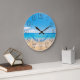Keep time with a touch of the seaside. This 10.75" round acrylic wall clock features a tranquil beach design: calm turquoise water, smooth golden sand, and a beige starfish in the corner, with the phrase “Seaside Memories” elegantly printed on the face. It’s a functional statement piece that brings soft coastal charm into any room—perfect for a beach house, kitchen, living room, or bedroom.