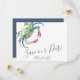 Meddela din förlovning med denna kustnära spara våra datumkort, designade som en del av en nautisk inspirerad bröllop-stationär kontorssvit. Med mina ursprungliga vattenfärgsbilder och "Spara our Date" i ett handskript med snyggt, är den här designen perfekt för strandbröllop i Myrtle Beach, North Carolina eller något kustmål. Namn, datum och plats för bröllop visas i en ren, klassisk layout, och baksidan har en kompletterande solid marin blå färg. Idealisk för par tittar för badbröllopsteman med lite charm och enkelhet. Utforska fullt matchande bröllop-svit på DotellABelle på Zazzle.