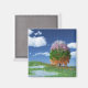 Fyra säsonger visas på en ensam träd som står i en ängsskugga. Det översta grenar är en ren och snö-täckt ge väg till rosa blommar, som vänder sig till mörk grönt löv, som vänder orange och guld och faller ner till marken. Mitt i höst löv på marken är blå vår blommor och smälter snö.
