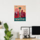Upptäck Seattlings häpnadsväckande skönhet med denna bedövande poster. Med ikonskylten, inklusive Space Nål, mot bakgrund av serene Puget Ljud.