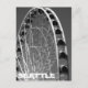 Svart och vit fotografi - Seattleys "Underbara hjul"-järnhjul på vattenfronten.