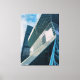 Bilden visar ett modernt Seattle-glas som bygger med en unik geometrisk utformning. Byggnad fasade består av en serie vinklade paneler som skapar en slående visuell effekt. Glaspanelerna är placerade i ett rutnät mönster som återspeglar det omgivande citysslet och himmel. Byggnad vassa vinklar och reflekterande yta skapar en känsla av dynamik och modernitet.