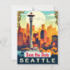 Transporter dina gäster till Pacific Northwest med denna högkvalitativa klassiska turistkonst med det ikoniska utsiktstornet. Dess charm från mitten av seklet är perfekt för din bröllopsinbjudan från Seattle eller spara datum.