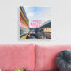 Ett foto fångar ingången till Pike Ställe Market i Seattle, Washington. Det ikoniska rosan, som läser "Public Market Center", dominerar scenen, med en klocka ansikte inarbetad i designen. Bilden har en framtoning underifrån som visar marknadens speciella arkitektur, inklusive en glasvriden byggnad på den lämnat och en täckt gångbana på högerna.