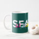 Konstruktion med Seattle-skylin med silhuetter av klassiskt byggnad och kulturmärken.