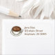 Etiketterna har en originalmarkör som illustrerar en kopp av kaffe. Anpassa med ditt namn och information om adress.