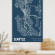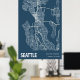 Bring modern cartographic style to your walls with this Seattle, Washington Blueprint City Map Poster. Designed in a classic architectural blueprint aesthetic, this artwork highlights Seattle’s detailed street network, waterways, and urban layout using crisp white linework on a deep blue background.