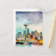 Seattle Washington City Skyline vattenfärg Vykort