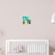 Det här vågrät poster en vit vattenfärgsmålning av en havssköldpadda som ligger nära hennes sandslott