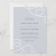 Utformningen av inbjudan till elegant kustbröllop innehåller bröllopsdagen i skifferbokstäver på en mistig grått-bakgrund, accentuerad i hörnen med slingor av braderade nautiskt rep. Inbjudningarna går tillbaka till rand på vid sjön.