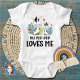 Den här söta bodyn är perfekt för din lilla att visa sin farfar hur mycket de älskar honom! Body är svart och vitrandig som en zebra med texten "Min farfar älskar mig" i en kontrasterande vit färg. Den är tillverkad av mjuk bomull av hög kvalitet och kommer att vara superbekväm för din lilla att ha på sig. Vad finurligt och speciellt sätt för ditt barnbarn att visa sin farfar lite kärlek! Den här bodyn kommer säkert att ge honom en stor leende varje gång han ser den.