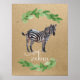 Söt zebratryck, perfekt neutral med en kraftbrun bakgrund, akvarellgrönska, och vit kalligrafitext.