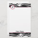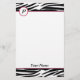 Brevpapper som presenterar en zebra tryckdesign över bästa och nedersta med rosor, klipper. Tillfoga initialt för att cirkla på bästa vänstert. Personifiera med ditt namn.