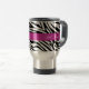Sebramonogramtravel mug med kall zebra ränder utformar mönster och färgrikt monogramutrymme som du kan personifiera och göra ditt eget, genom att tillfoga din namn eller initialer. Designat för manar eller kvinnor, denna moderna design gör detta en roligt att resa koppen för kaffe, tea eller din favorit- dryck.