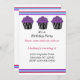 En rolig sebramönstrad cupcake födelsedagsinbjudan. Virvlar av lila frosting i zebraformade cupcakefodral utgör dessa läckra cupcakes. Anpassa med all din festinformation som önskat.