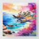 "Secluded Beach". En Medelhavsstrand i utkanten av ett bläckfiskblått hav är inramad av sötens rosa och lila. Ett tyst och avslappnat ställe för övervägande.