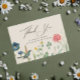 Trädgårdsblommor med söt fågel, elegant, vismisk ram med en elfenbensvit papper bakgrund i struktur, Anpassade textmeddelande med elegant-Tack-manusskrift.