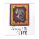 Ett verkligt foto av en viktoriansk kvinna som jobbar hårt på sin "toppmoderna" syning maskin, tillsammans med en logotyp för roligtens anpassningsbar: Sewing är mitt liv!