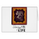 Ett verkligt foto av en viktoriansk kvinna som arbetar hårt på sin "toppmoderna" sittande maskin, tillsammans med en logotyp för roligtens anpassningsbar: Det är mitt liv.