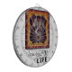 Ett verkligt foto av en viktoriansk kvinna som jobbar hårt på sin "toppmoderna" syning maskin, tillsammans med en logotyp för roligtens anpassningsbar: Sewing är mitt liv!