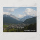 Brevkort med foto av Seefeld i Österrike placerade bland berg med blå himmel och moln.