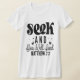 This motivating tee features the powerful promise: "Seek and you will find", referencing Matthew 7:7. The contrasting fonts and heart details emphasize active faith and the reward of spiritual searching. A simple yet profound call to devotion.