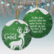 Seek God, Religious Holiday Ceramic Ornament with green sparkle glistening glow capturing the Christmas magic and joy of a Christian season. On the back, the sacred writing, Mark 11:24 states, "Therefore I tell you, whatever you ask for in prayer, believe that you have received it, and it will be yours" all in customizable text, ready for you create your favorite bible verse in festive devotional design hanging decorations. Order your Christs teachings testaments today and make your custom inspirational doctrine keepsakes extra special with passages of the word of God! 🎄⛪️