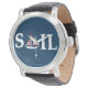 Skjuttextillustration med segelbåtens dekoration mot mörk blått bakgrund. Det går att ändra bakgrunden till färg och lägga till en annan i designen efter eget val.