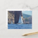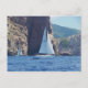 Sloop seglar med Sardiniens dramatiska kusten i bakgrunden.