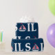 Skjuttextillustration med segelbåtens dekoration mot mörk blått bakgrund. Det går att ändra bakgrunden till färg och lägga till en annan i designen efter eget val.