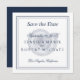 Tungblå text med klassisk gräns över årstidsgränsen. Spara datumet genom att göra ett fet påstående med det här fotofria. Elegant och enkel "spara datumet" på en inbjudan i fyrkantigt format. Information om bröllop på framsidan med adress på baksidan. Anpassa ytterligare med all information du vill ha.