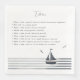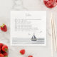 Öka din bröllopsmottagning med den här charmerande pappra middagsservetten, försedd med bord trivia om paret lycklig. Med en minimalistisk utformning med en segelbåt i lugnande blåaktiga grått-hues och klassiskt nautiskt rand, överträffar dessa servetter den tidlösa elegansen hos New Englands kustnära stil. Perfekt för personlig kontakt till din bord-dekoration medan du roar dina gäster.
