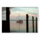 Säljbåten sitter bara i hamnen i skymningen på Roanoke Island.