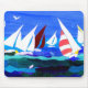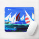 En mousepad med en nautisk anstrykning. Segelbåtdesignen göras från en handpainted papper collage. Se också att matcha hälsningkort och andra produkter.