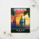 Oahu spara datum bröllopsinbjudan, resepostkort. Segelbåtar på vacker solnedgång i livfulla färger.