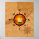 Vintage nautisk Compass Ro med digital målning av en segelbåt och solnedgång i centrum och vintage stil nautisk karta i Florida Nycklar.