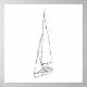 Teckning om en segelbåt. En liten båt med segel eller segelbåt. Bilden som skrevs ut på det här objektet skapades från en skiss som ritades med en ritplatta.