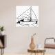 En illustration av en segelbåt skiss på vattnet. Denna design ser verkligen effektiv ut på dessa affischer
