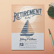 Sätt segeln i pension med inbjudan! Mot bakgrund av solnedgången i vintagens orange och blåtonerna glider en segelbåt tvärs över stilla vatten, som symboliserar resan till ett nytt kapitel av avslappning och äventyr. Inbjudan era gäster att ge sig in på detta oförglömliga firande i pension!