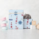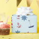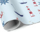 Nautiska mönster med segelbåtar och ankare och fyrar med rött och vitt rand. Roligt som segling, båt, sommar eller strandtema eller för sjömän. Visas på en ljusblå bakgrund eller anpassa till vitt eller valfritt färg.