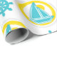 Denna enkla utformning är roligt med solnedgångarna och segelbåtarna tillsammans med fraktens hjul för att göra den komplett. Det är rent och tyst, men det säger mycket utan ord. Ha en Nautisk dag och lägg till lite roligt till nästa gåva med detta pappra omslag. Njut!
