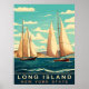 Två vintagars segelbåtar vid Long Island kusten, NY. Vintage resor poster.
