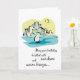 Ett underbart födelsedagskort för en kvinna eller man i vilken ålder som helst. Önska dem bäst på sin dag med denna segelbåt på havet framför en stad. Perfekt för någon som gillar natur och idrott.