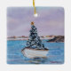 Segelbåtens vinterprydnadsföremål julgransprydnad keramik