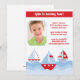 Denna röda vit- och blåttsegelbåtfödelsedagsfest inbjudan är perfekt för någon födelsedagsfest. Gulliga fartyg och ett foto av ditt barn inviterar dina gäster i stil! Det är lätt att skräddarsy detta kort att göra, ändrar precis specificerar av partyet, och du göras! Kakaostudior