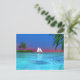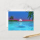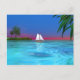 En tropisk scen i vatten med en segelbåt. Du kan flytta eller ta bort innehåll på baksidan av vykortet genom att klicka på knappen "anpassa".
