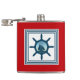 Nautisk temadesign med dekoration i segelscen i raderade fyrkanter på röd bakgrund
